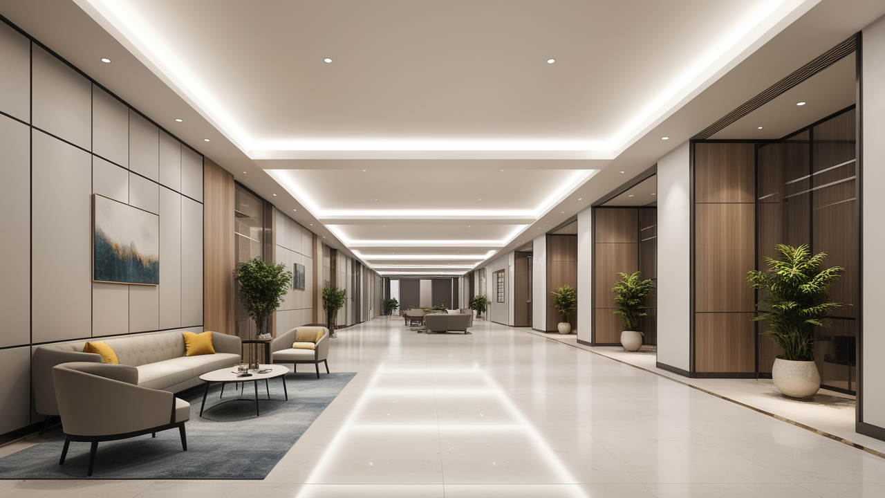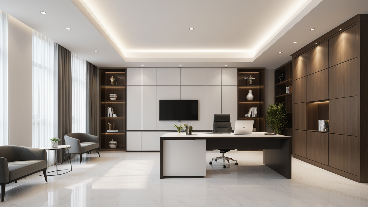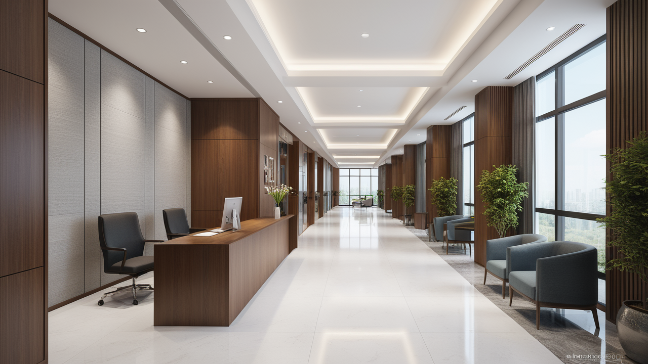 本案設計以簡潔的裝飾語言,對稱的空間布局,規(guī)范方整、功能健全,與環(huán)境形成交流,最終達成默契,突出了現(xiàn)代辦公環(huán)境講究效率的特征,整體風格簡約大方,符合公司的品牌形象和文化,同時也考慮到員工的舒適度和實際工作需求。這個辦公室裝修設計案例旨在為公司營造一個宜人的工作環(huán)境,提高員工的工作體驗和幸福感,從而推動公司的發(fā)展和成長。"