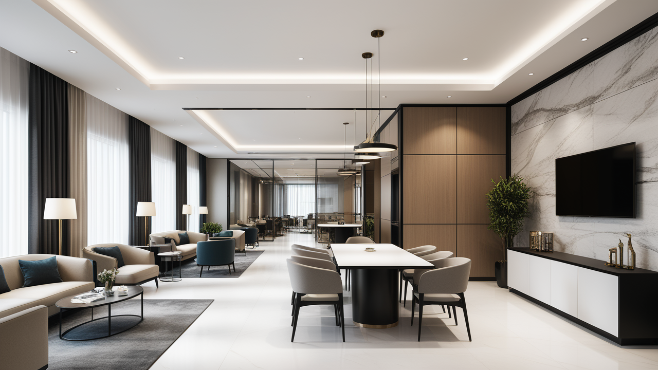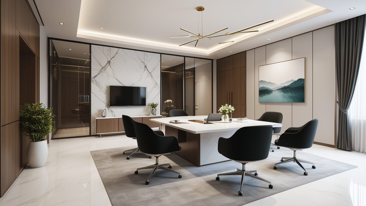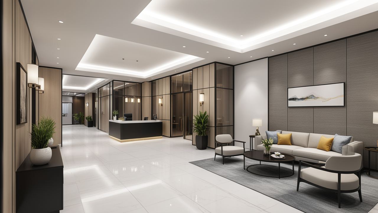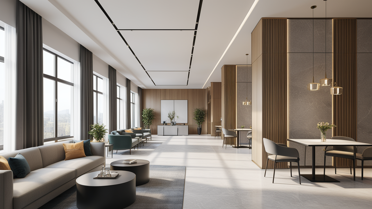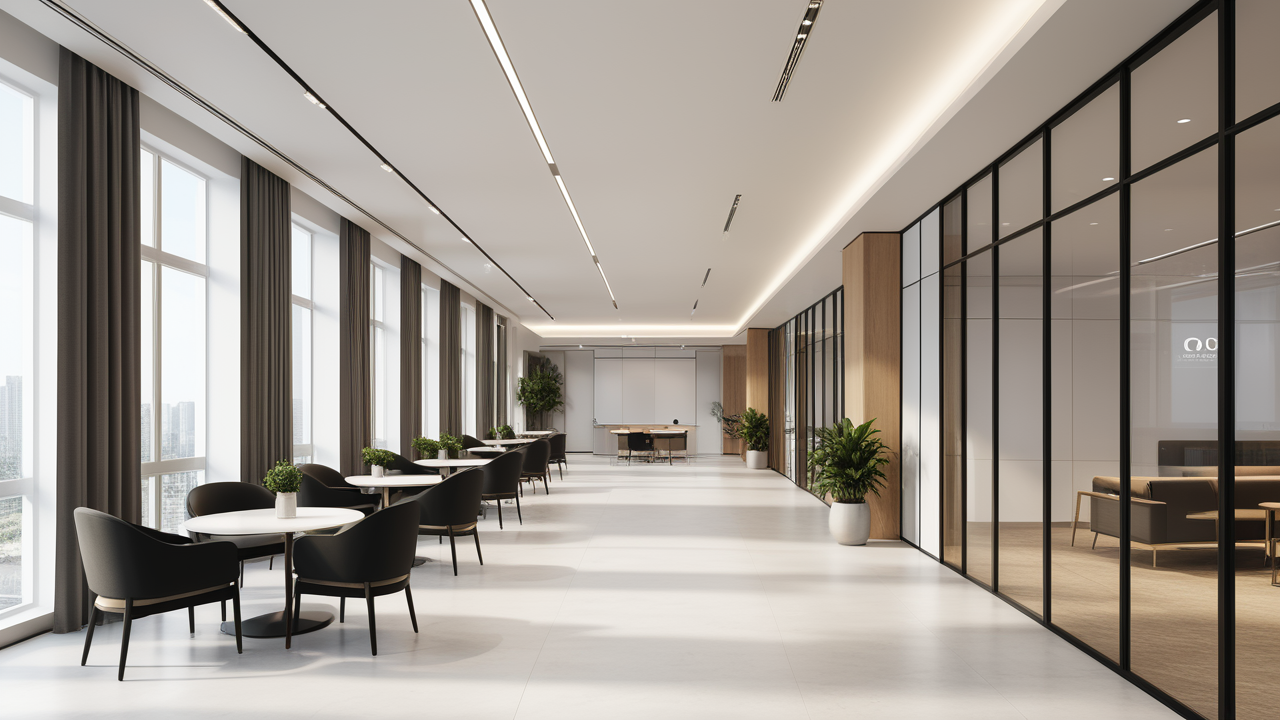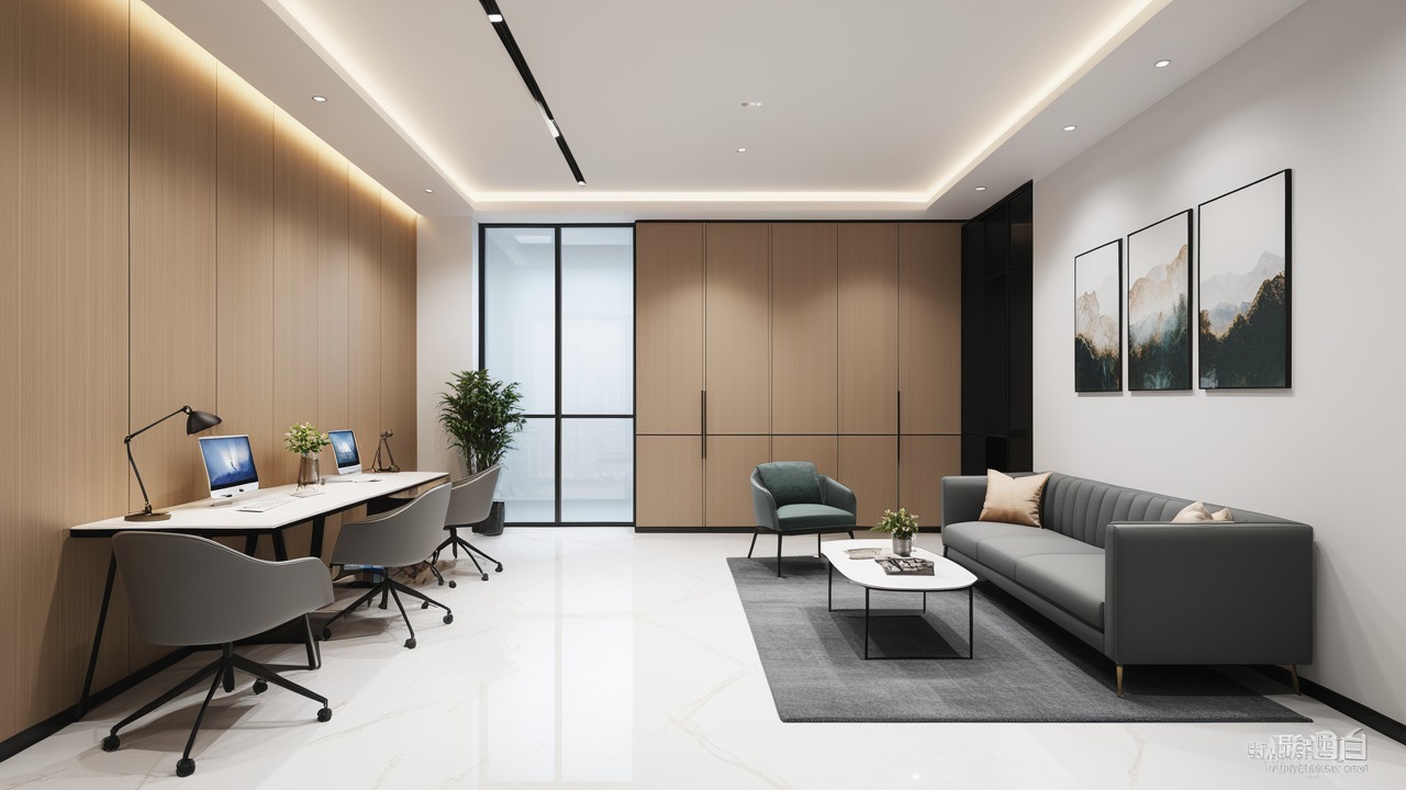 本案屬于簡(jiǎn)約的風(fēng)格,簡(jiǎn)單而有品位,色調(diào)冷暖結(jié)合。辦公環(huán)境的風(fēng)格取向、舒適與否對(duì)于提升員工的工作效率和體現(xiàn)企業(yè)文化起到至關(guān)重要的作用。辦公室整體色調(diào)采用藍(lán)灰調(diào),使員工辦公的心情能夠沉靜下來,工作效率自然可以得到提高。有一位建筑大師曾說過:“當(dāng)綠化、光和風(fēng)根據(jù)人的意念從原先自然中抽象出來,它們就趨向天堂”。我們?cè)谑覂?nèi)引入天光設(shè)置了自然植物,將室外的感覺引入室內(nèi)空間,使辦公環(huán)境更具活力。