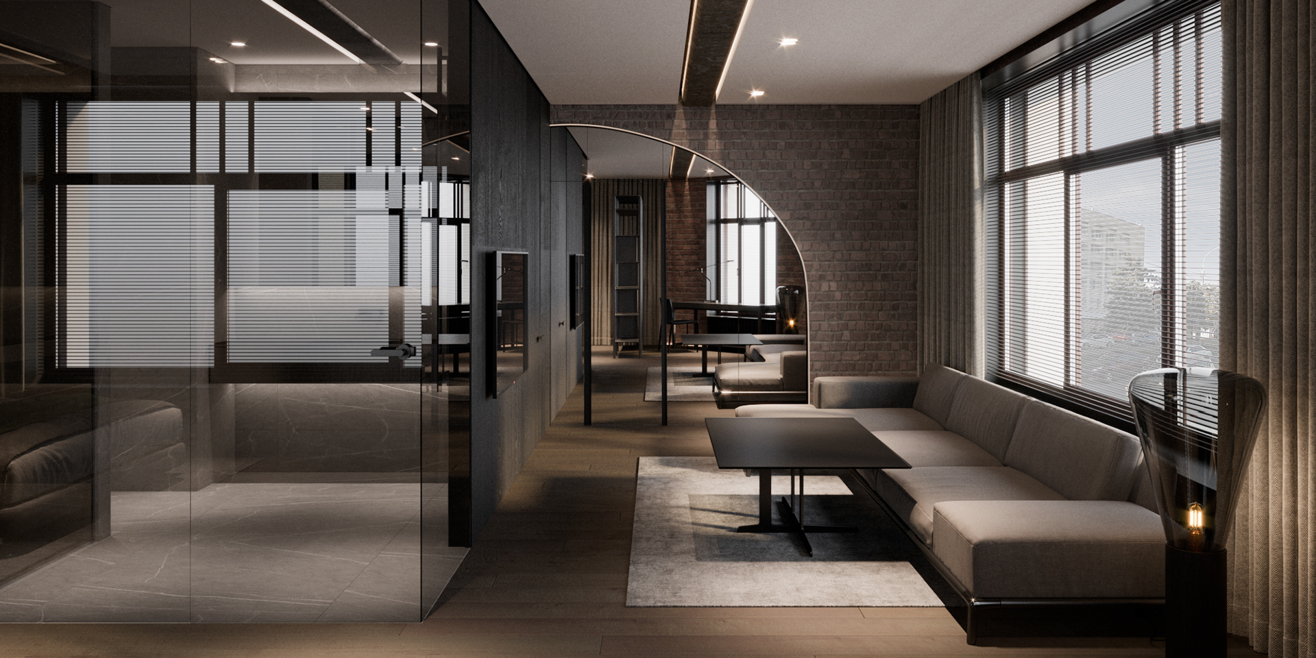 本案設(shè)計(jì)以簡(jiǎn)潔的裝飾語言,對(duì)稱的空間布局,規(guī)范方整、功能健全,與環(huán)境形成交流,最終達(dá)成默契,突出了現(xiàn)代辦公環(huán)境講究效率的特征,整體風(fēng)格簡(jiǎn)約大方,符合公司的品牌形象和文化,同時(shí)也考慮到員工的舒適度和實(shí)際工作需求。這個(gè)辦公室裝修設(shè)計(jì)案例旨在為公司營(yíng)造一個(gè)宜人的工作環(huán)境,提高員工的工作體驗(yàn)和幸福感,從而推動(dòng)公司的發(fā)展和成長(zhǎng)。"