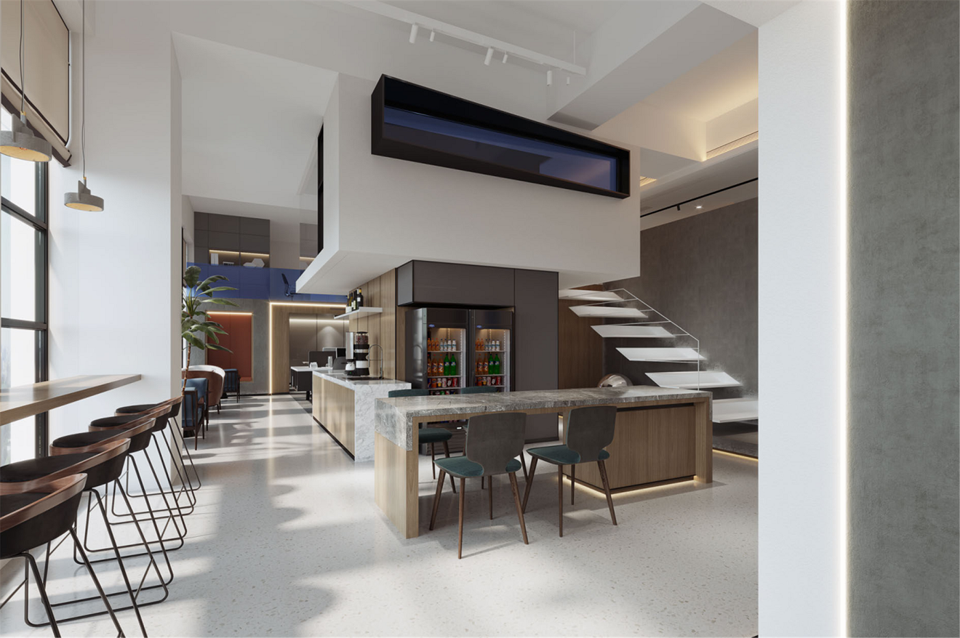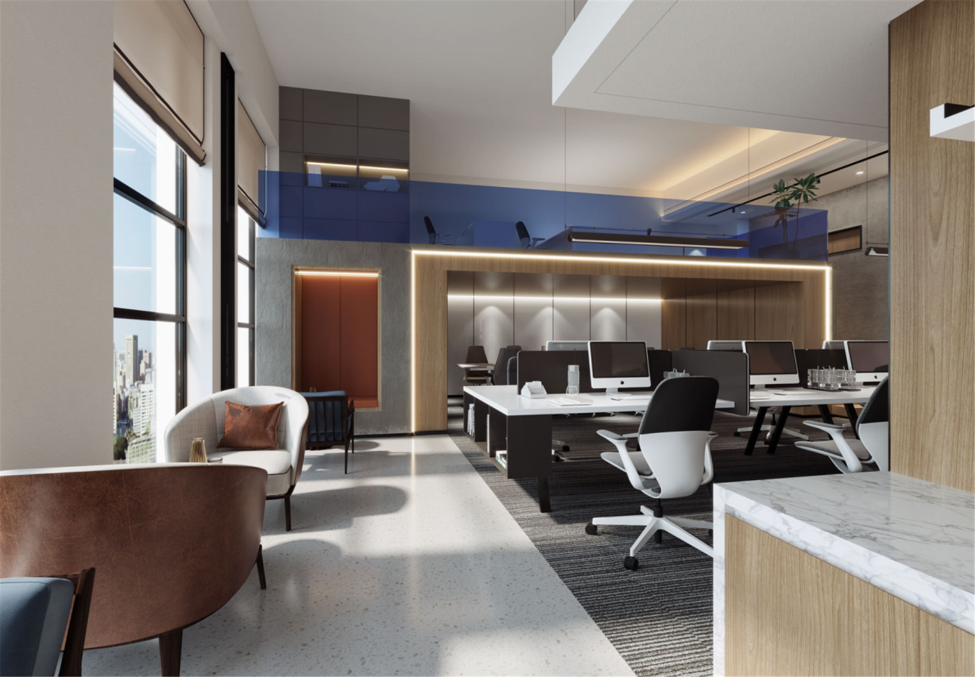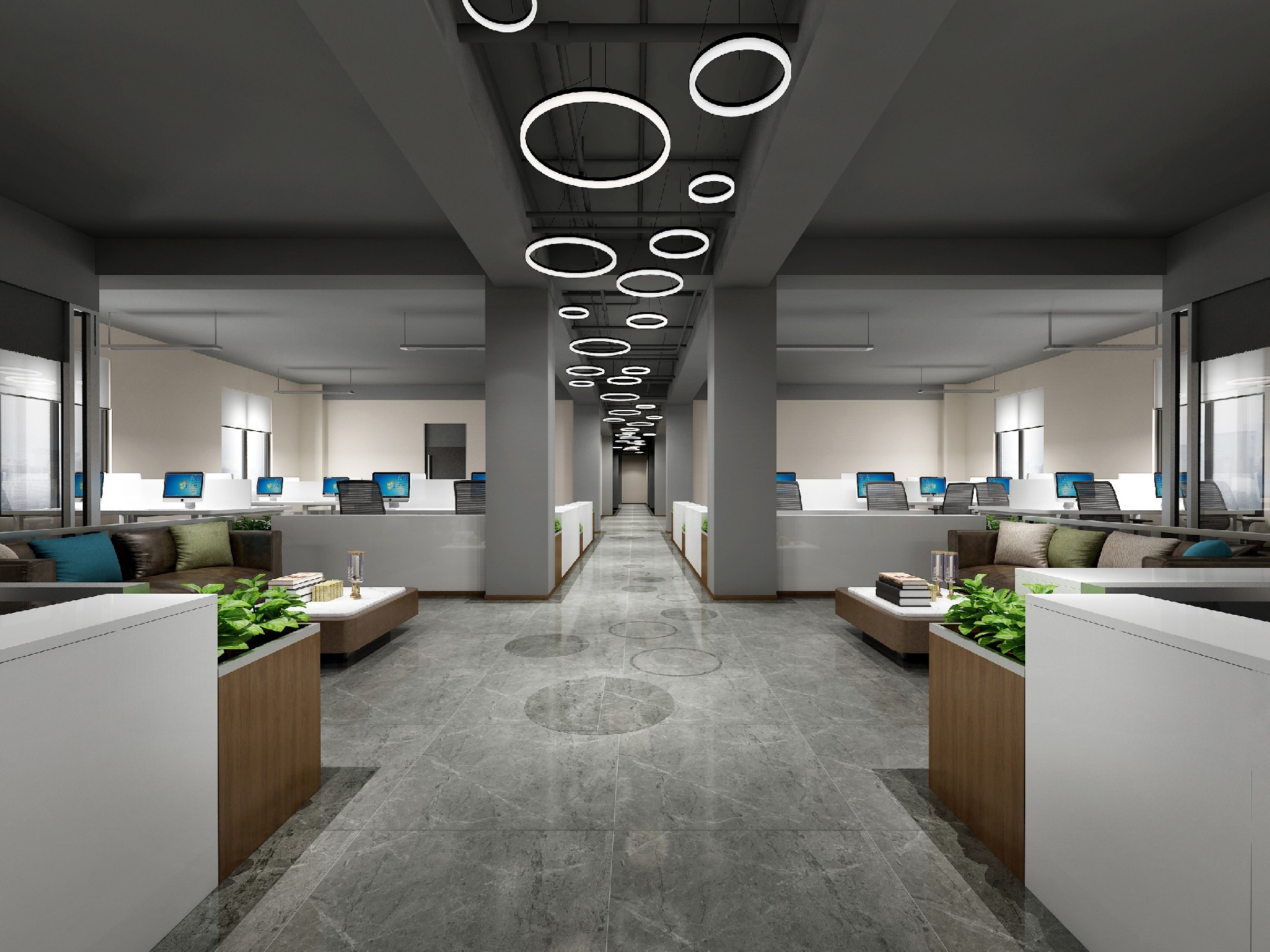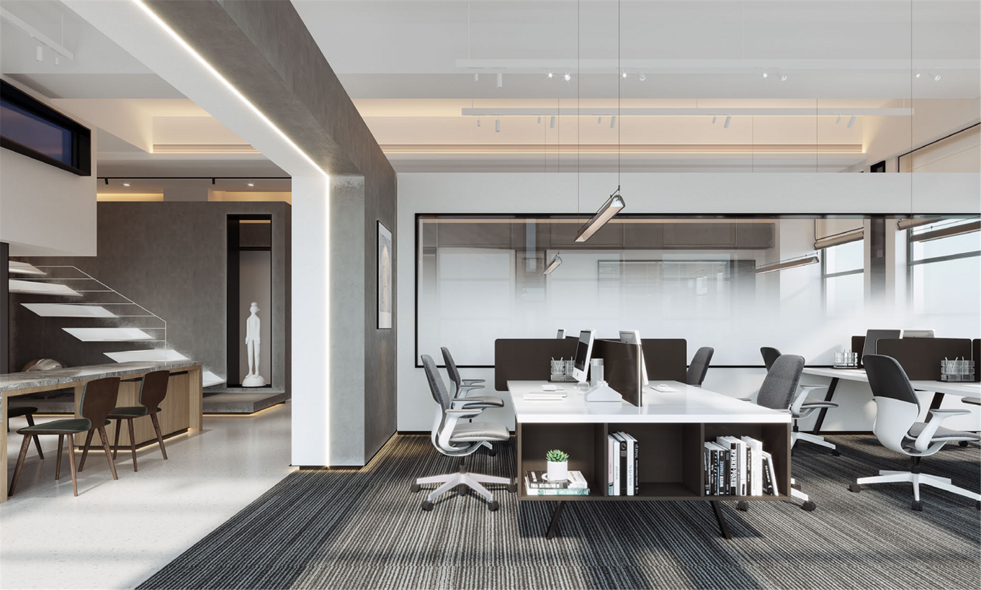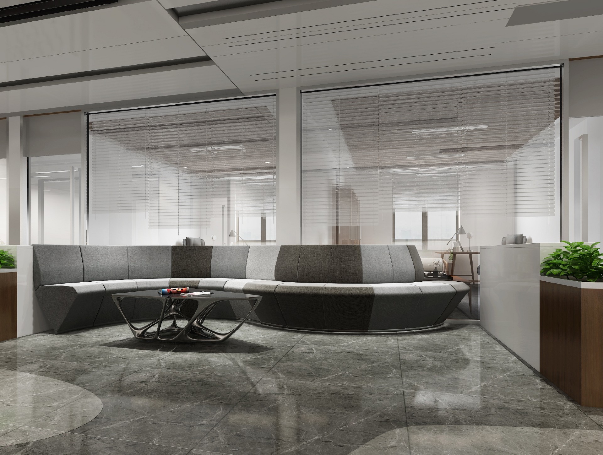 本案圍繞其“靈透”,大量使用了玻璃、銀色系列及淺色調(diào)的潔凈材料,如玻璃幕墻、銀質(zhì)鋁塑板、水晶白麻石材、?;u等,圍繞本案主題,構(gòu)筑個(gè)性化空間,該色彩搭配除了清透、雅致、穩(wěn)重、大氣之外,亦表現(xiàn)出一種力度感和效率感。滲透入貴機(jī)械制造企業(yè)之“清透感”,亦反襯企業(yè)之“柔美感”。以似乎矛盾的手法,又體現(xiàn)出古人之哲理“剛之極則柔,柔之極則剛”。老子說“上善若水”,該案則就其“善”滲透到每一個(gè)空間,極盡讓每個(gè)功能區(qū)都具有清透之靈性,盡顯靈動(dòng)、清澈、時(shí)尚、大氣之空間氣韻。