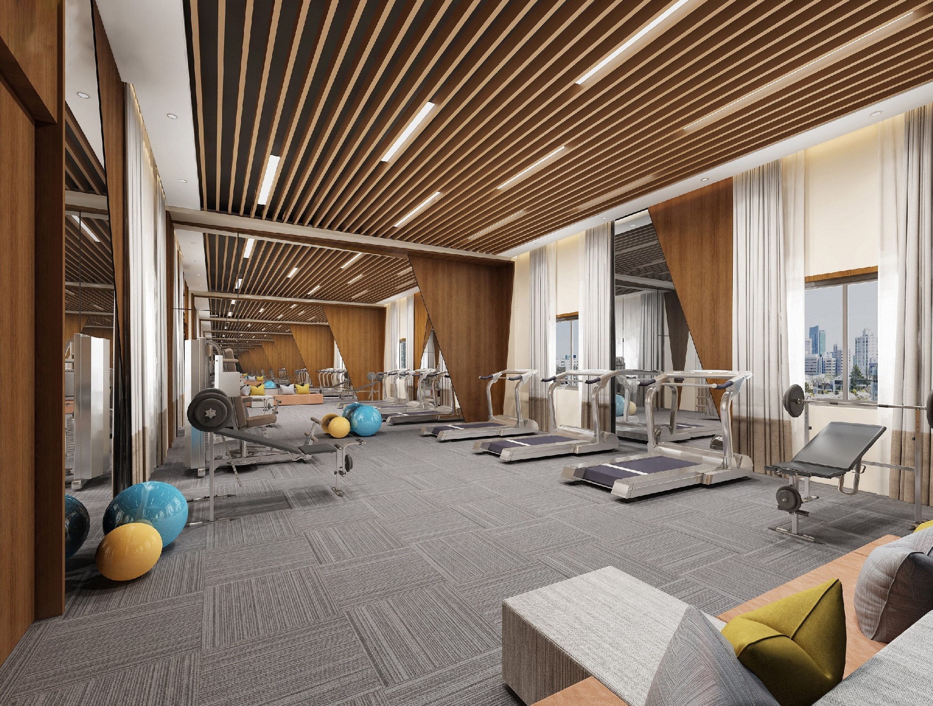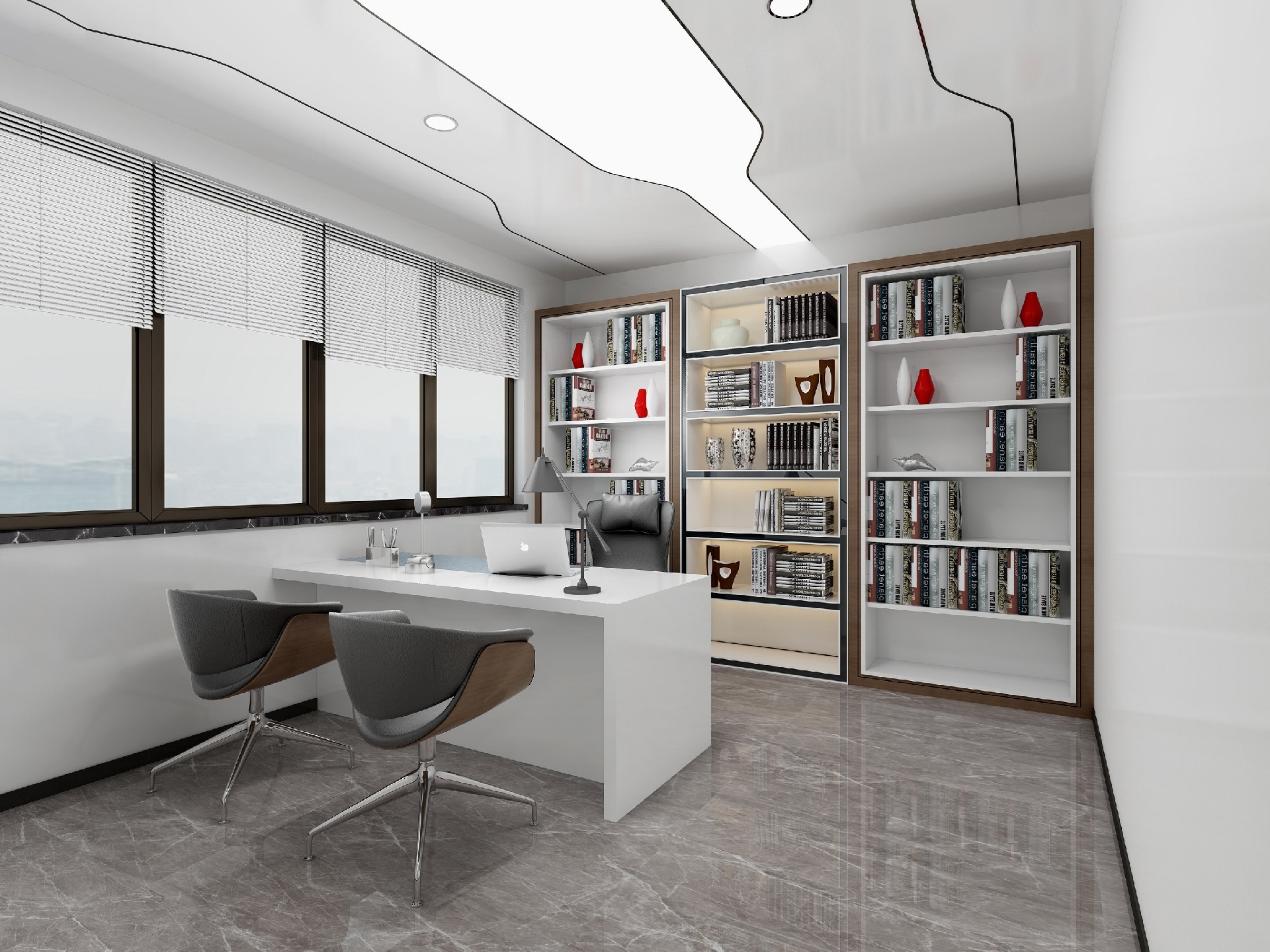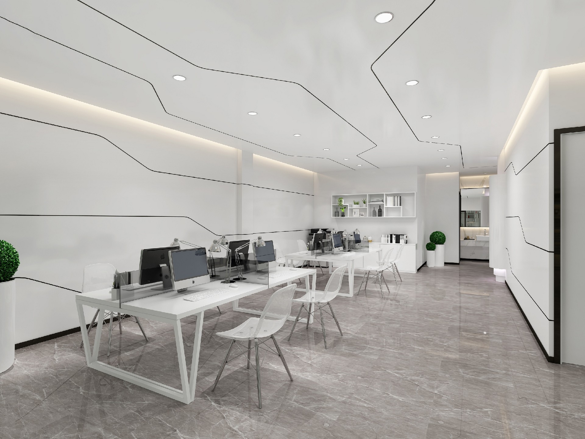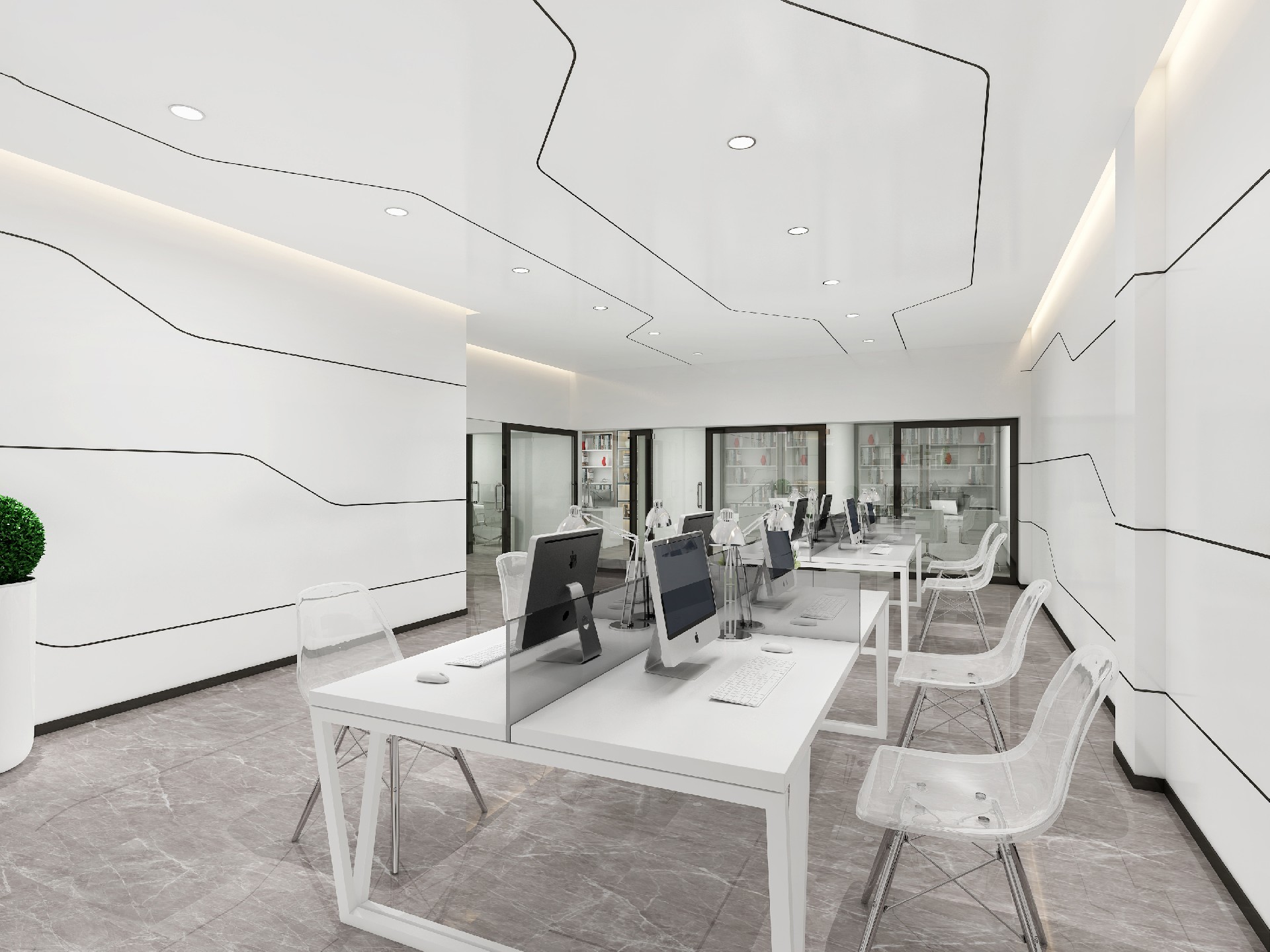 本案設(shè)計(jì)中企業(yè)形象墻,以其企業(yè)文化的新興、蓬勃、嚴(yán)謹(jǐn)為主題,兩側(cè)以“居有竹、步步高”的銀色墻柱帶來視覺沖擊感,加上企業(yè)形象色的類比色、淺色石材及不銹鋼條的運(yùn)用,顯示出金屬的質(zhì)感和工業(yè)文明的主題;然而休息區(qū)的陳設(shè)卻明麗蔥郁,充滿人文情感的自然氣息,恰恰彌補(bǔ)了視覺中的剛硬個(gè)冷竣,使人倍感親切。